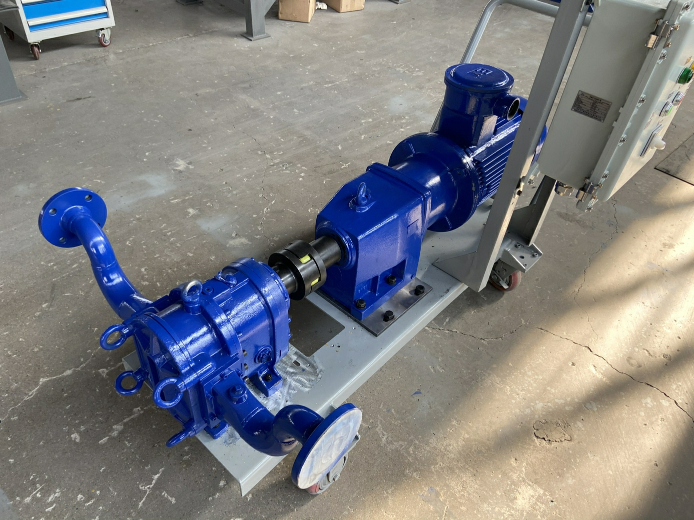 罐底污油一般是燃料油,含油污水,渣油,原油,航煤燃油等,成分復雜,一個罐區(qū)存在很多這樣類似的油罐,間距較長,清理時,羅德移動式罐底污油自吸泵(凸輪轉子泵)受到客戶歡迎。